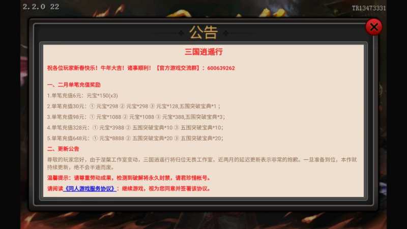 以上就是三国逍遥行官方版v2.2.0的介绍了,本站不存储任何下载资源,均由机器人自动调用其官方下载链接资源,如有侵犯到您的权利,请联系本站删除处理,更多关于三国大富翁2破解版的相关资讯,请关注西西下载站。