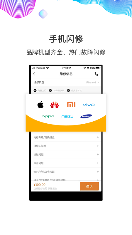 5、支持预约上门快修服务,你可以通过手机快速的一键进行预约,能够为您快速的上门服务;