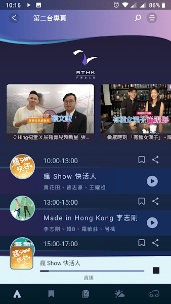 RTHK Mine app内置了超多的香港电台,为您提供成熟的电台收听功能,您可以通过它快速的找到最新的电台节目,聆听来自香港的声音,体验不一样的香港文化魅力!