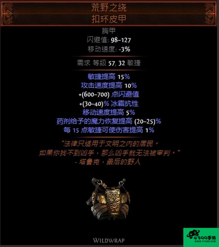 9级【荒地】胸甲预测升级版,删除后直接掉落,增加15%的敏捷性,每15%的敏捷性提供1%的伤害increase。