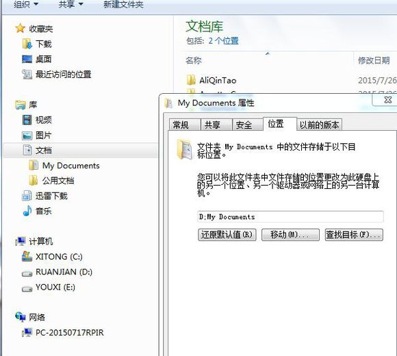 第一步;把我的文档更名为英文不能有中文,并且把文档移至D盘(如果已经改过请无视)。