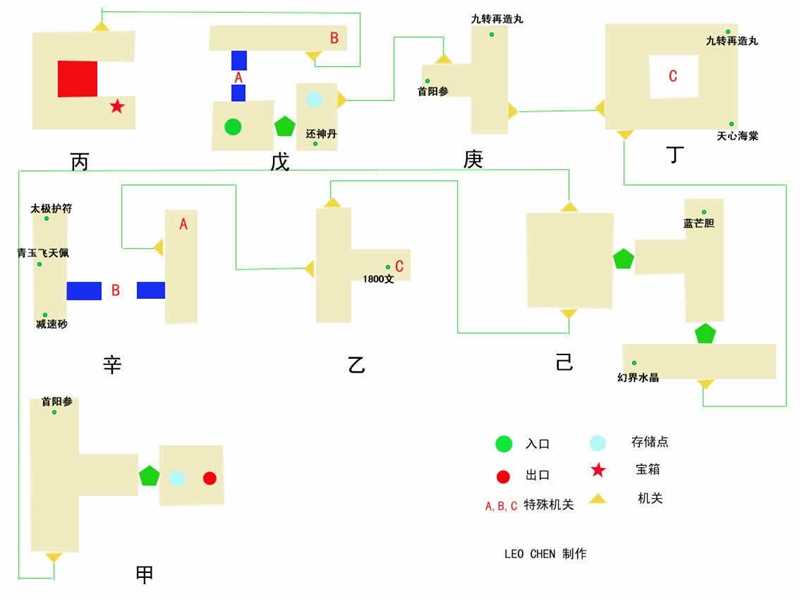 此迷宫可以遇到的敌人有:兵器谱、雷音鸟、长鞭魔女、魔猩猩、肥魔宁、陨星、聚宝盆