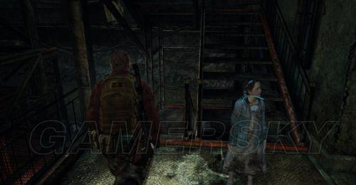 上去之后,打开红色门,从房子另一边出去之后,会有一段向上走和向下走的楼梯,这里让巴瑞和娜塔莉亚从楼梯往下走。