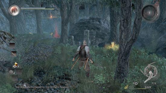 回头,中间道路上的魂荒内是只忍者妖鬼,忍者妖鬼相较普通妖鬼动作更加敏捷但血量不高,通常中后期破角追击便可直接击杀,前期和普通妖鬼一样待它攻击收招时上去打一套,慢慢磨死。