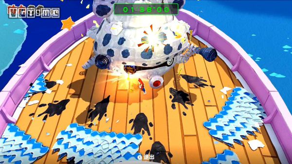 敲打标记后鱿鱿老大会把用户弹开,但此时它的身体已经十分脆弱。在鱿鱿老大旋转攻击后再次跑到其身边并用锤子敲打眼部,数次之后即可破关。