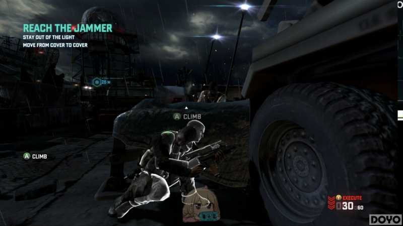 掩体系统,如果你玩过《特殊行动:一线生机》那么一定会感到很熟悉,在距离掩体有一段距离时按下“B”键就能以一个帅气的滑铲动作进入掩体,随后在掩体状态下同样可以以各样帅气的动作切换掩体,假如掩体很多的话,一路“A”就行欣赏到费舍尔大叔一连串华丽流畅的隐匿动作。