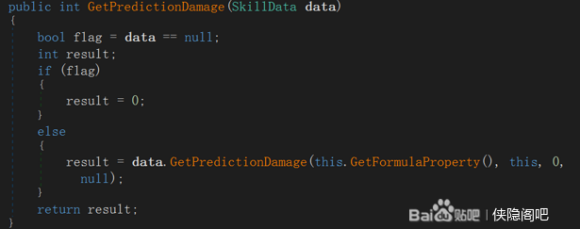 举个例子,在Heluo.Data中CharacterInfoData里面能看见一个函数GetPredictionDamage用来计算预估伤害,我们点开这个函数跳到SkillData能看见具体计算方式,比如用到了攻击方攻击(CharacterProperty.Attack)和倍率(coefficient))。