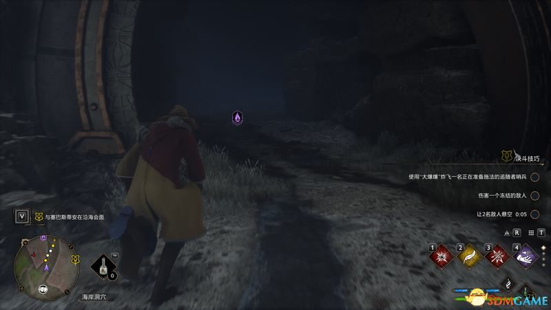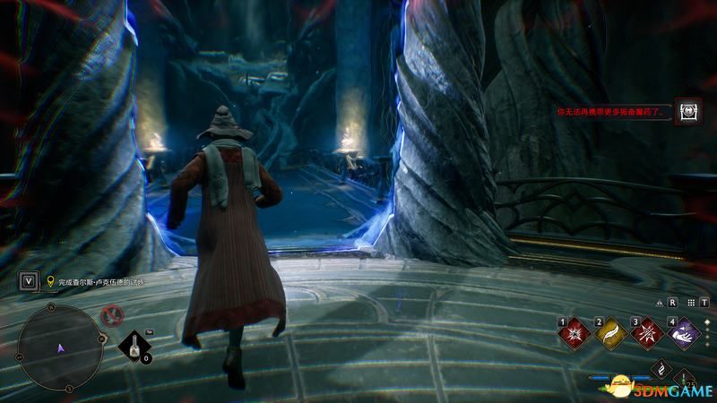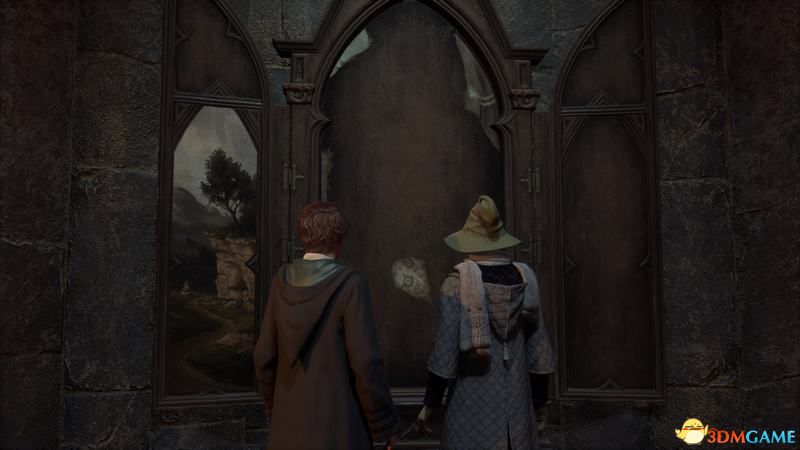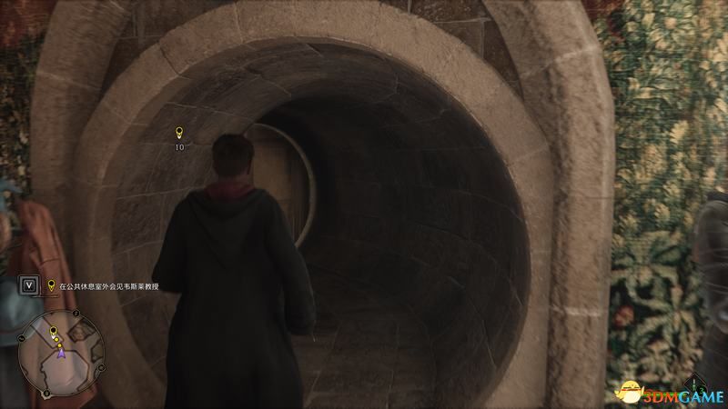 无须多说(有兴趣也可以把对话都点完),和三个未来的朋友互动完后,就可以穿越石洞去找韦斯莱教授了。