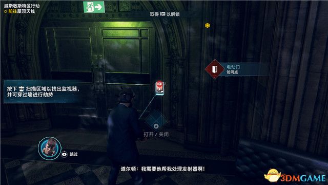 在可以访问的电动门区域,你可以使用强大的黑客技能将门打开。