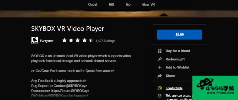 若未下载SkyBox,可在商场购买下载。SkyBox需要9.99美元。玩家也可以关注公众号,在后台回复Oculus游戏”获得SkyBox安装包和游戏资源。
