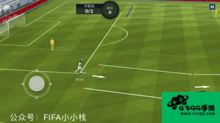 操作模式:射门键向左移动摇杆方向和带球方向30-120度(不同球员根据不同的花式星级会有差异,星级越高,范围越大)