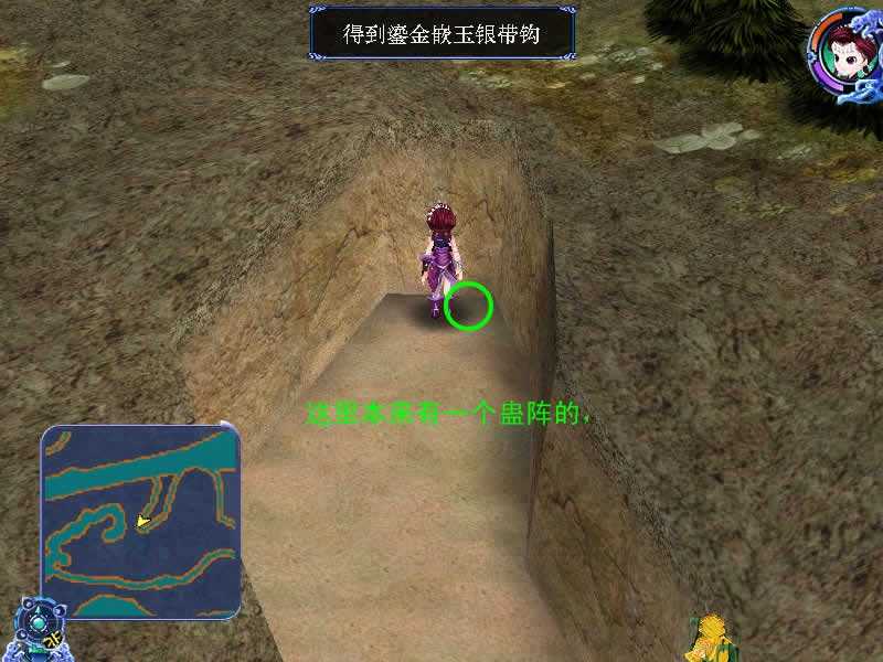 古董:队伍中有紫萱在的时候,可以再回来大渡口,在迷宫的尽头,有一个蛊阵,把带队角色换成紫萱后,点击蛊阵解开,里面有古董鎏金嵌玉银带钩