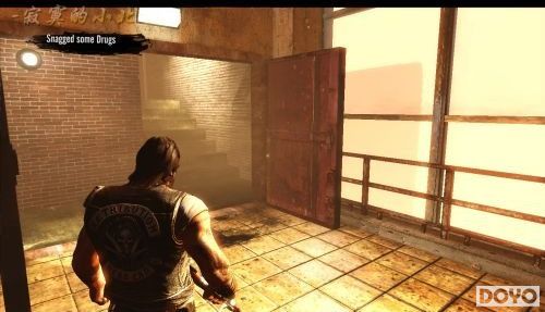 把车间的敌人清理完后找到一个红色的大门,靠近大门会有一戴着面具的胖子踢开大门然后举枪向我们射击。这个胖子比较耐打,用手枪打他需要花掉几十颗子弹,如果想节省子弹也可以冲上去和他肉搏,不过他的格斗术也是比较强的。