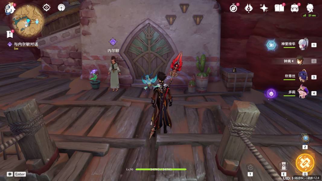 1.首先在须弥地区有概率刷新委托《沙中花》,npc内尔敏位于阿如村,用户与其对话后需要帮助npc完成四件事情。