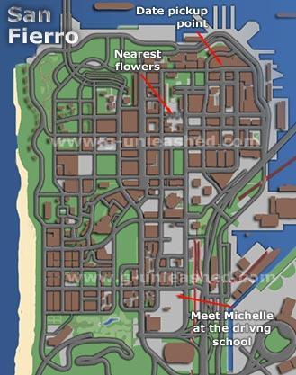当你开始约会时,初始好感度是15%。它会随着每一次的成功约会而上升。当然,你不再去找她的话或者约会很糟糕,好感度也会下降。每位女孩都有自己特殊的爱好和约会方式,但是有一点,天下女人都是一样喜欢的——花。美丽的花可以为你的约会增添浪漫气氛哦,在整个San Andreas都能找到。(怎么送花?天,你连这个都不会?那你怎么泡MM啊?还好有我这个月老在。从你武器列表里选择鲜花,走到女孩面前,按TAB。如果你按鼠标左键的话,.....当我没说)随着你们关系火速升温,MM们对你的要求会越来越高,一般的小花招可能不管用了,那我们该怎么办?别担心,下面会说道。