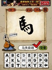 《成语玩命猜》20关答案:20-1答案:俯首称臣FSCC、20-2答案:能屈能伸NQNS、20-3答案:入木三分RMSF、20-4答案:马失前蹄MSQT