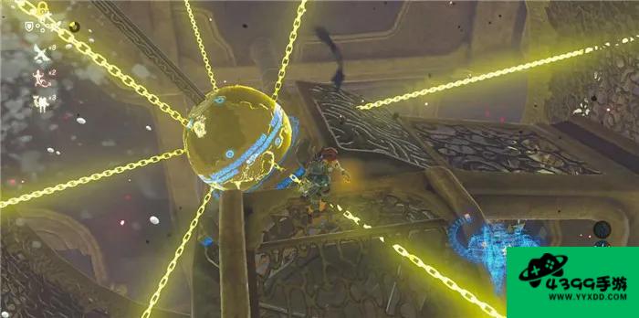 沿着野兽的鼻子走到最后,拿走宝箱里的古轴承。然后抬起野兽的鼻子,从上到下数超过4个网格,稳定自己,不要摔倒。然后用滑翔伞跳下来,从天窗爬到野兽的头上。