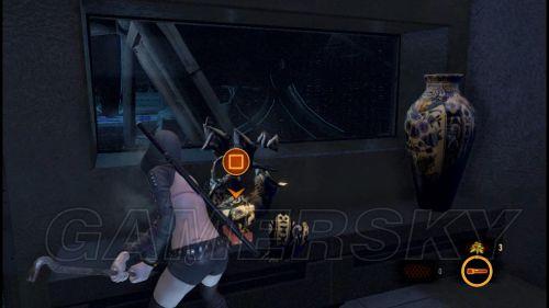 往左下梯子后,左边小道有一个木箱,里面是个烟幕弹,对此关的敌人有大用。