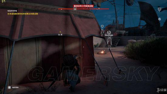 抵达标识所在的地点即可。但需要注意的是阿蒙神殿是管制区域,当你进入神殿范围之后就会招惹上警卫。这里抵达牢房最好还是从侧面的绕过去。当然,任务并不强求你潜入,这里的敌人等级很低(1级),你完全可以在这里故意吸引来敌人,积累一些经验值。