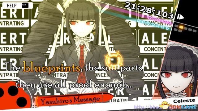 step16.与朝日对话,她表示早些时候,大神樱就genocide Jack刺伤朝日的事件去跟叶隐、十神、腐川谈谈,约谈的时间为正午,地点就是这娱乐室,此时获得言弹“朝日的证词”;