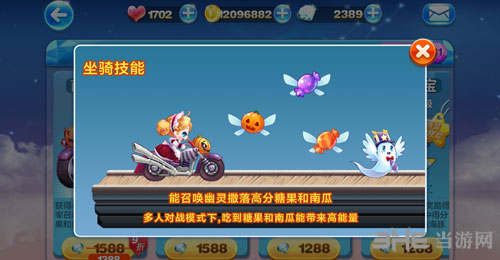 技能:获得4倍踩怪得分,能召唤幽灵洒落高分糖果和南瓜。