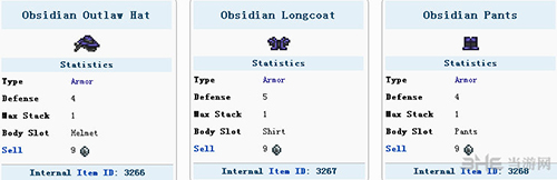 黑曜石套装是1.3新增的套装,由帽子、长衣和裤子构成。
